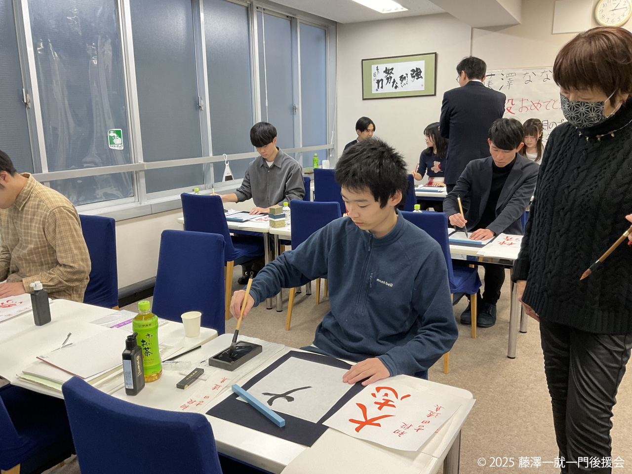 世界で活躍する人材を育成するために実社会で生きる力を醸成する、一門棋士を対象とした教養講座。後援会会員、吉田眞佐子先生による書道の会の第10回目です。