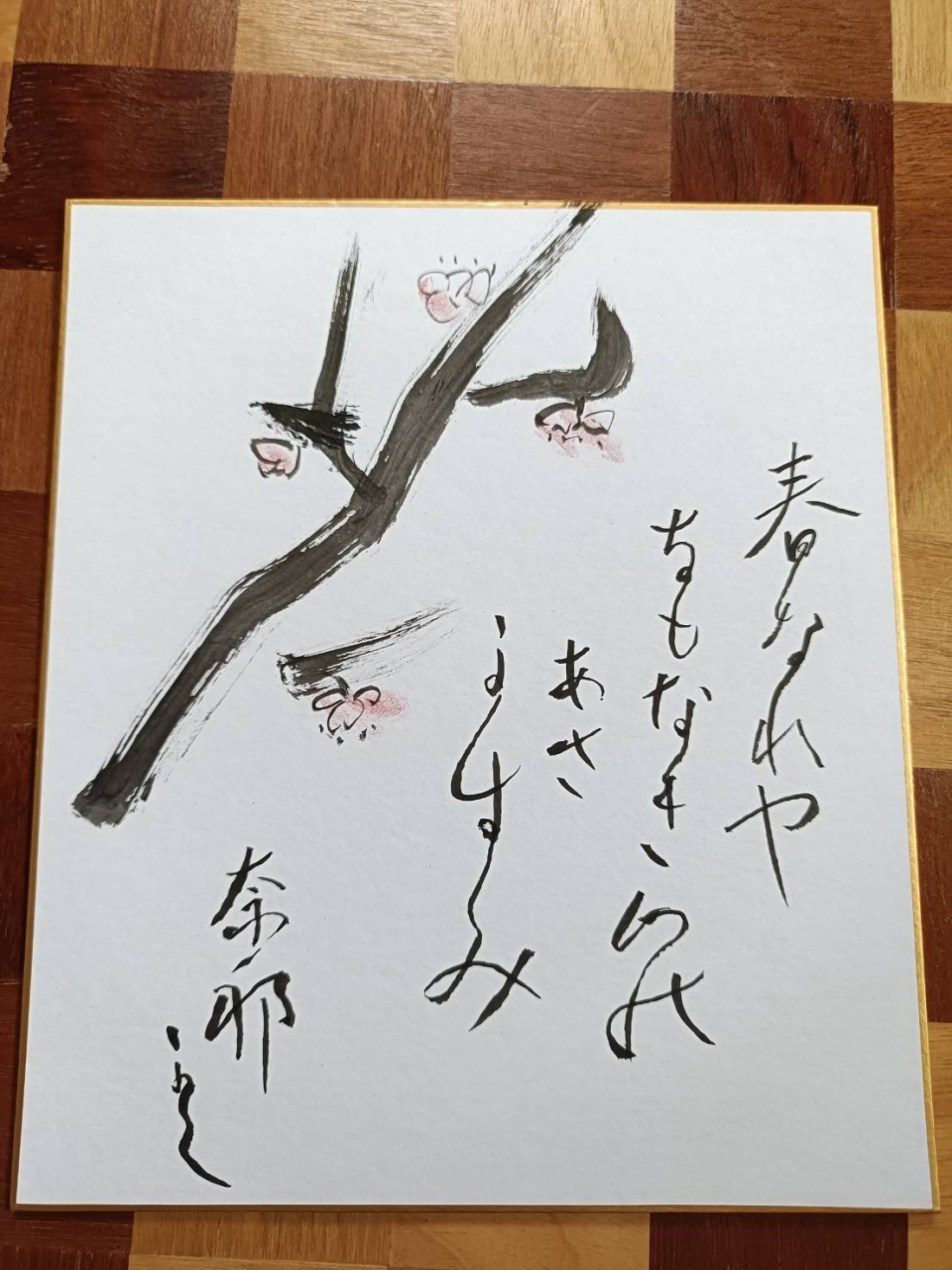 各自、様々な大きさの色紙を選んで揮毫をお稽古しました。色紙の大きさに応じて美しい余白を考えながら筆を運んでいきます。豊かな教養やユーモアが息づく吉田先生とのお話しも書道の会の楽しみの一つです。今回も、色紙を包むたとう紙の話をきっかけに、日本の風土に根差した「しまう文化」のお話をいただいたり、アクシデントで書き損じた色紙に先生のアドバイスで画と句を添えて見事にグレードアップさせてみたり、楽しい学びや発見のある時間となりました。(事務局)